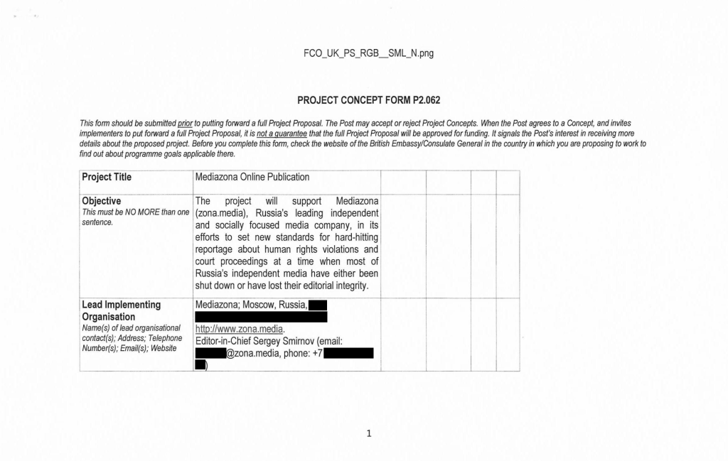 Mediazona would be expected to produce “around 120 news articles per week, at least 18 investigative reports per month and a series of online feeds delivered from crucial events across Russia.” The Foreign Office pledged, “this programming will serve to expose corruption and the abuse of power whilst bringing credible and authentic voices into the public domain.” In addition, the editorial team hoped to “forge new partnerships with key players in the Russian and international media landscape, thereby ensuring powerful multiplier effects.”