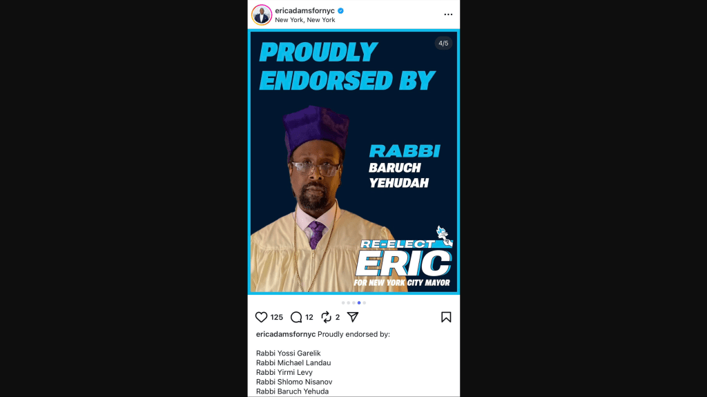 New York City Mayor Eric Adams has touted the endorsement of a notorious “rabbi” whose refusal to address accusations that he molested a child led to a major schism within the Black Hebrew Israelite community in the US. The mayor boasted of the endorsement in a August 11 Instagram post which was edited hours later to remove any reference to the accused pedophile in question.